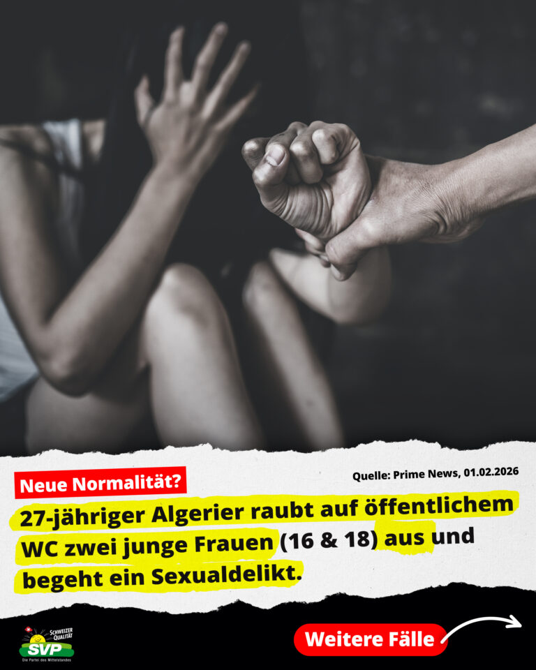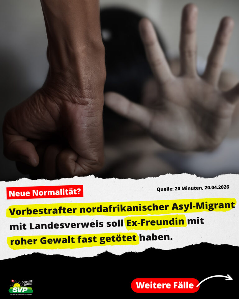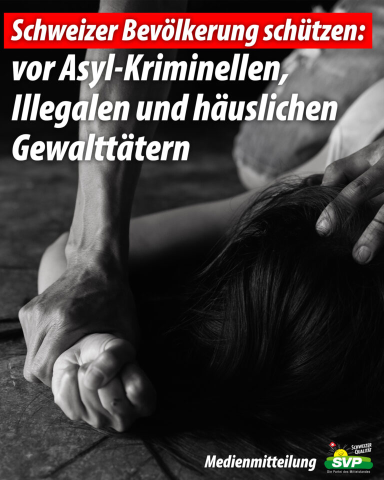 Medienmitteilung Schweizer Bevölkerung schützen: vor Asyl-Kriminellen, Illegalen und häuslichen Gewalttätern Weiterlesen » 23. Dezember 2025