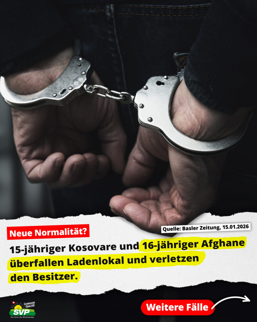 Raubüberfalle, Vergewaltigungen, Messerstechereien und Einbrüche sind an der Tagesordnung. Insbesondere kriminelle Asyl-Migranten verüben teils schwerste Gewalttaten. Das herrschende Asyl-Chaos gefährdet die innere Sicherheit der Schweiz und kostet die Steuerzahler Milliarden. Statt die Grenzen zu kontrollieren, verweigert der verantwortliche SP-Bundesrat Jans griffige Massnahmen zum Schutz der eigenen Bevölkerung. Unterschreiben Sie deshalb jetzt die Volksinitiative «Asylmissbrauch stoppen! […]